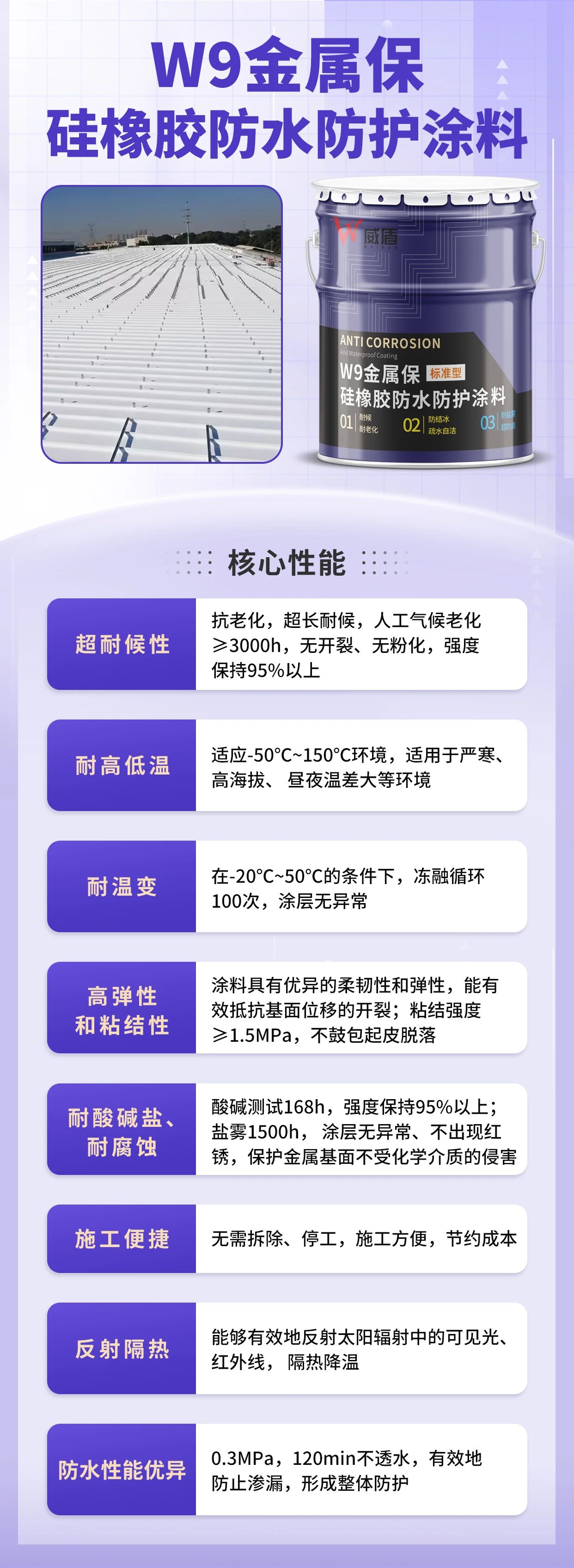 As a company specializing in exposed building protection, Weldon deeply understands the 'specific needs' of metal substrates, and therefore has developed the W9 Metal-Preserving Silicone Rubber Waterproof Protective Coating specifically for metal surfaces.